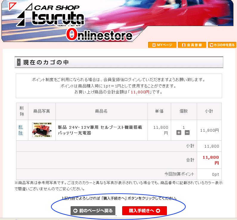 お買い物を続ける場合は「買い物を続ける」ボタンをクリックすると前の画面に戻ります。